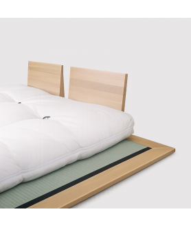 Le cadre du lit est en hêtre massif, le sommier à lattes en sapin massif (livré en kit). Les tatamis traditionnels sont en paille de riz (voir nos tatamis), bordées d'un galon japonais en coton noir et recouvert de natte de jonc tressée.