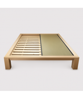 Le cadre du lit est en hêtre massif, le sommier à lattes en sapin massif (livré en kit). Les tatamis traditionnels sont en paille de riz (voir nos tatamis), bordées d'un galon japonais en coton noir et recouvert de natte de jonc tressée.