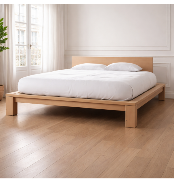 Cadre de lit en bois massif + sommier à lattes ou sommier à lattes + tatamis