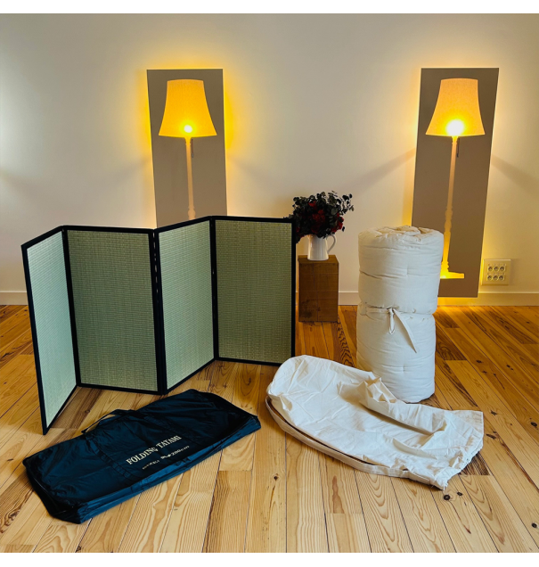 Tatami pliable et son futon traditionnel japonais