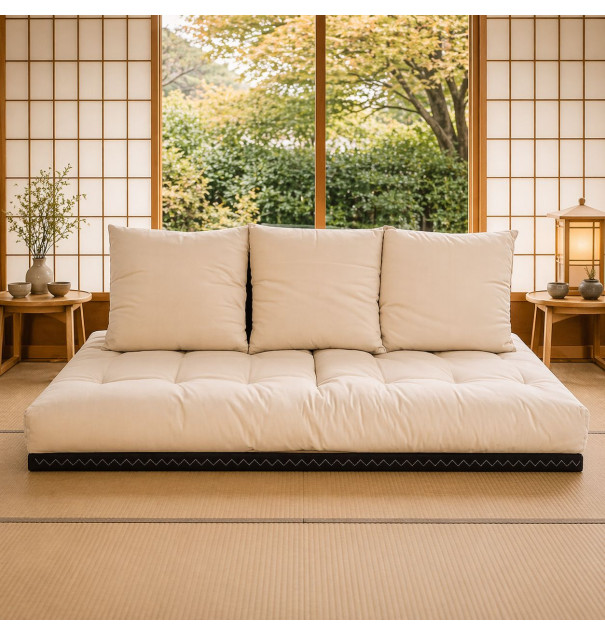 Une large base constituée de 3 tatamis, à garnir d'un futon 160 cm.
